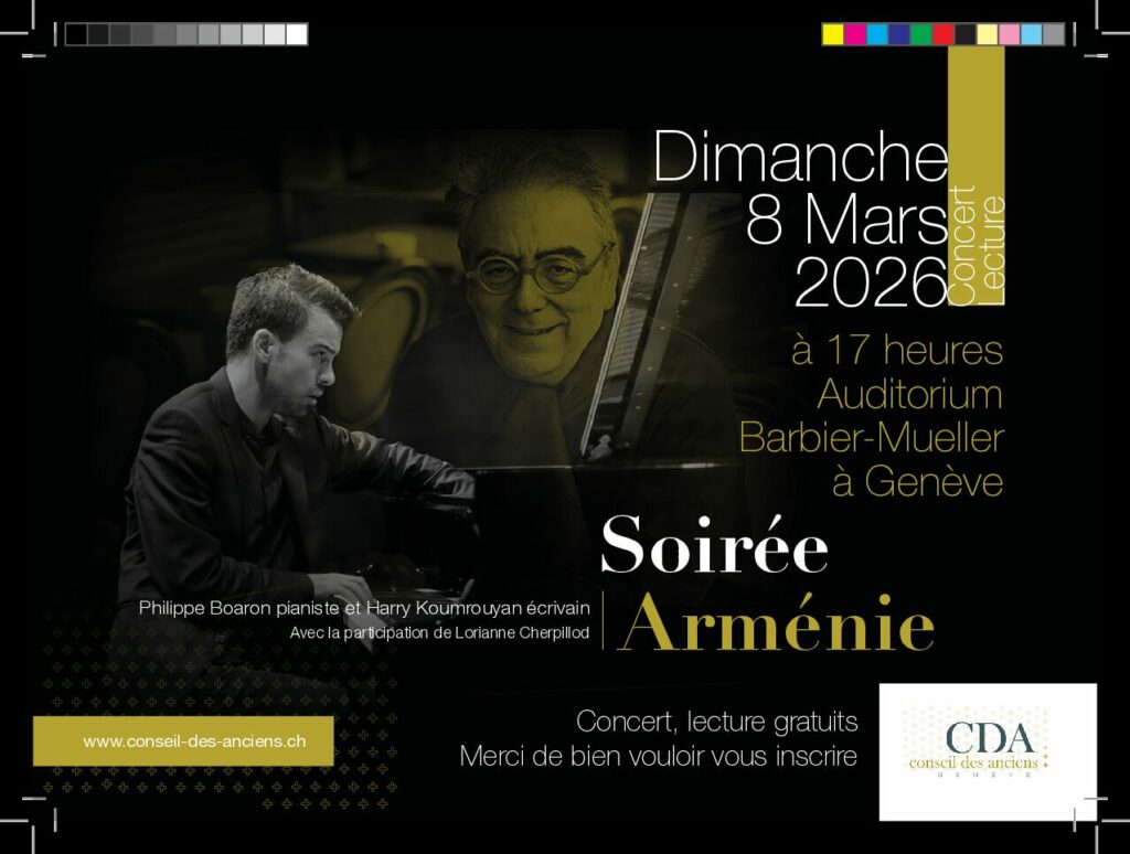 Concert Lecture, avec Philippe Boaron, pianiste et Harry Koumrouyan, écrivain, avec la participation de Lorianne Cherpillod, le dimanche 8 mars 2026